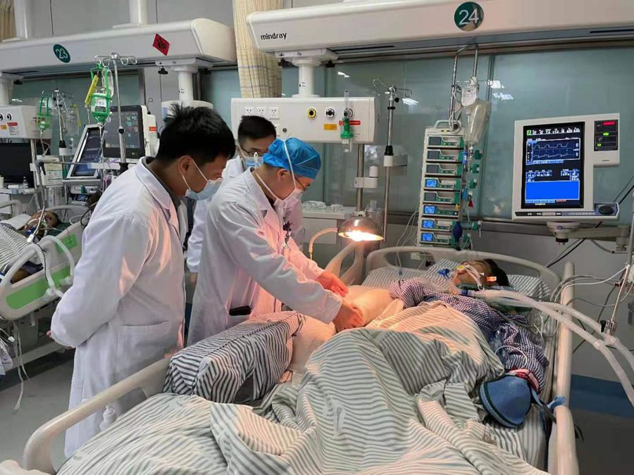 医生检查断臂再植手术后的王先生。安医大一附院供图