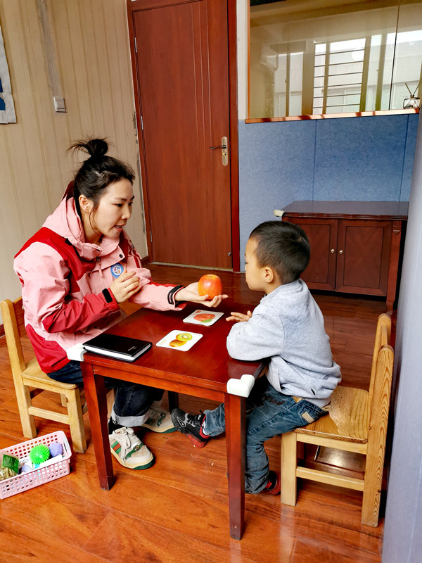康复训练老师黄文娟在为“小星星”上课。