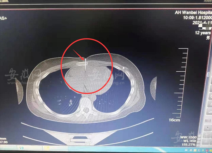 新安晚报 安徽网 大皖新闻讯 4月12日,记者从安医大一附院获悉,昨天上午十点左右,宿州市的12岁男孩畅畅(化名)在家玩耍时,不慎被装修用的气钉枪击中胸部。长约4CM的钉子,穿透胸骨,直达心脏。