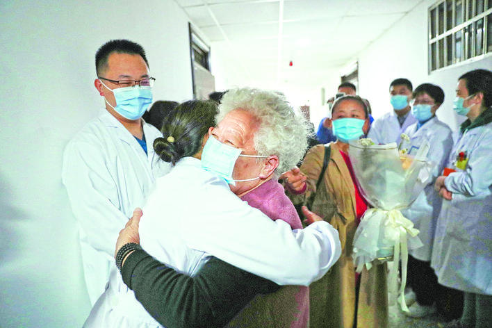 随着病情一天天好转,高爷爷的精气神也越来越足。2020年3月13日,两位老人都达到了出院标准,龙奶奶的愿望实现了:一起出院,一起回家!