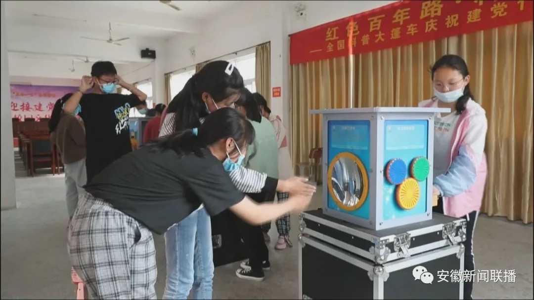 今天,在马鞍山和县,科普仪器的展示,让同学们现场感受到了科学的魅力;在滁州明光,群众们通过现场讲解了解到食品药品安全、新冠病毒防控等科普常识;在阜阳,带着40多项科学装置的“科普大篷车”开进了校园。