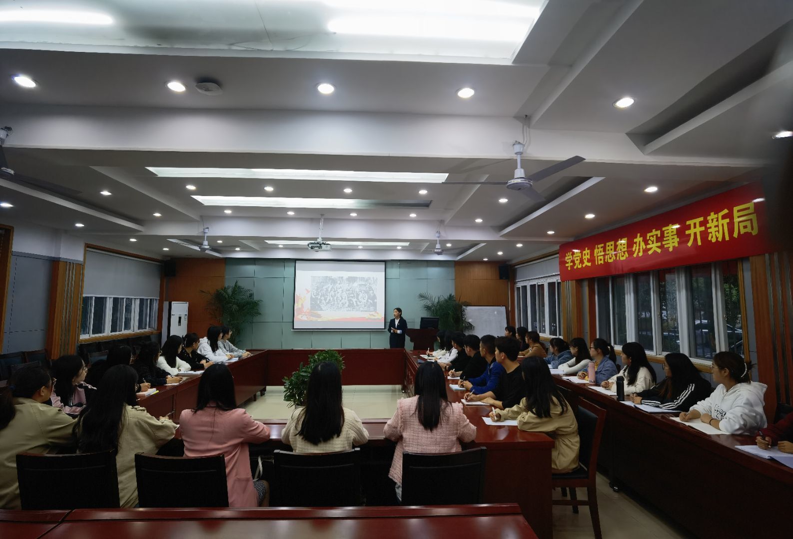 【出现场音压混】我是马克思主义学院宣讲团的宣讲人周伊阳……在马克思主义学院的一间教室里,学院党史宣讲团成员、思想政治教育专业硕士研究生周伊阳正在给学弟学妹们讲述红医将领谷广善的故事。青春的语言将党史和红医史结合起来,为党史教育注入时代特色、青春气息,更能引发共鸣。学生金颖超:【出录音】红医精神是中国共产党革命精神在医疗卫生行业中的具体体现,我们应该学习他在中国医疗卫生事业进程中做出的伟大奉献,舍己救人救死扶伤的精神。