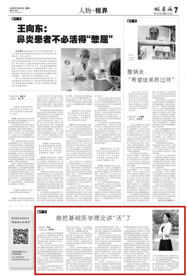 她的课堂授课不仅教授学生知识,更有温度和温情。她习惯将专业知识和医学发展史、科技史结合,为学生埋下科技创新的种子。她总不忘提醒学生,天冷时,在为患者查身体前,要先将听诊器捂热。在实验课堂上,她希望学生尊重和关爱实验动物,尊重每一个生命。