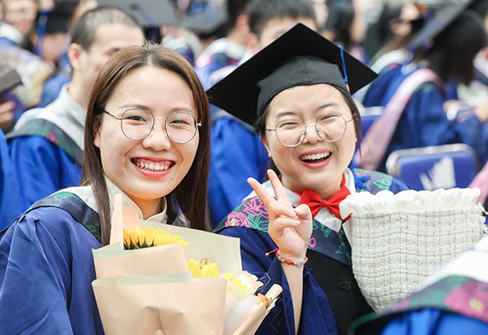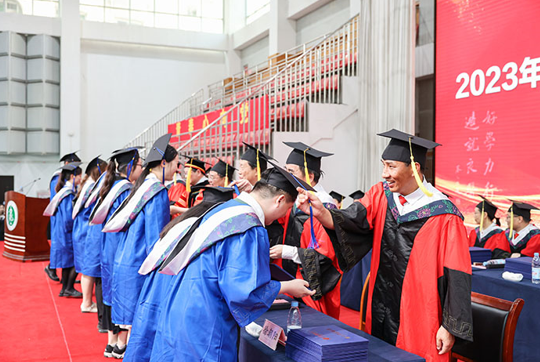 “祝贺毕业!”“工作落实了吗?”“还要继续在我们学校读硕士吗?很好!继续努力!”“接着读博吗?加油!”学位授予仪式上,学校领导和校学位委员会成员为毕业生加冕颁证,并暖心询问学子们的未来打算。