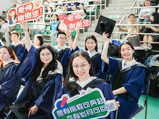 除线下会场外,毕业典礼通过线上平台及学校官方微信视频号、抖音号等进行了同步直播,全校师生及广大家长亲友、校友等近5万人次同步观看,纷纷为2023届毕业生送上美好祝福。