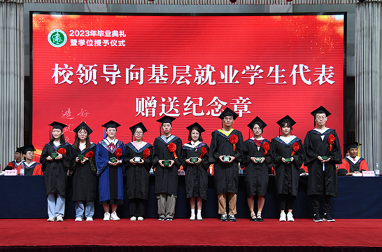 近年来,越来越多的毕业生同学响应党和国家号召,投身到基层一线和艰苦边远地区建功立业。该校还向10位基层就业学生代表赠送了纪念章,鼓励他们继续把奋斗实干融入伟大事业,让青春之花绽放在祖国最需要的地方。