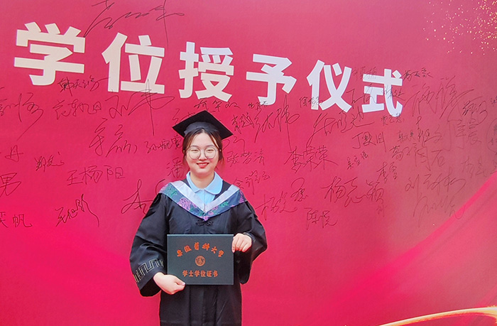 她就是刘莫楠,中共党员,我校2023届生物技术专业本科毕业生,已保研至中国科学技术大学生物学专业。在校期间,她成绩优异,担任班级学习委员,2020年、2021年先后获得徐叔云奖学金和良医成长计划奖学金,2021-2022学年国家奖学金获得者,曾获“三好学生”“优秀学生干部”等荣誉,与团队合作完成的两幅作品在2021年安徽省大学生生物标本制作大赛分获一等奖和三等奖。