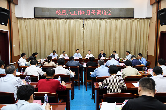 5月31日上午,学校召开重点工作5月份调度会,校党委书记王琦主持会议,全体校领导、党委常委参加会议并发言。会议就重点项目建设、重点领域改革、重点年度工作、重大安全风险隐患等四大领域10项重点任务进行调度,其中,会上调度4项,书面调度6项。分管校领导就有关工作进行了工作汇报,牵头责任单位负责同志作了情况说明,与会校领导进行会议交流。