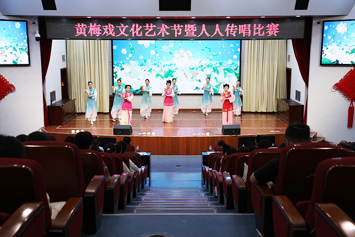 “黄梅好听乡音甜哪,天上人间,你还在深情地唱啰嘿……”伴随着大学生良医合唱团带来演唱《山野的风》,6月6日下午,我校黄梅戏文化艺术节暨人人传唱比赛在图书馆一楼学术报告厅举办。副校长肖圣龙现场观看演出。著名黄梅戏表演艺术家、第十九届中国戏剧“梅花奖”获得者、国家一级演员、我校特聘教授吴亚玲担任比赛评委。