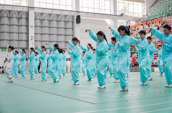 太极拳比赛在令人震撼的开场表演中拉开帷幕。个人赛赛场上,队员们身姿矫健、动作流畅自然,向观众展现了太极拳、太极剑的独特魅力。随后,全校14支参赛代表队依次上台展示,不仅展现太极文化之美,也充分体现了各个学院独特的精神风貌。太极拳比赛不仅是一场体育竞技的盛宴,更是中华传统文化的传承与弘扬,精彩的表演也迎来现场观众的阵阵喝彩与欢呼。