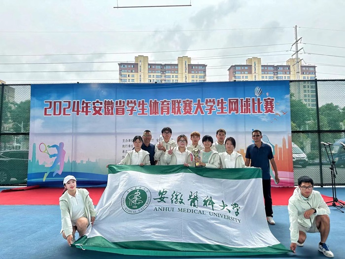 6月17日至6月25日,2024年安徽省学生体育联赛大学生网球比赛在安徽省天长市网球中心举行。我校第一临床医学院2022级麻醉专业仝书榕同学在女子单打比赛中勇夺金牌,实现我校在该项目上的历史性突破。