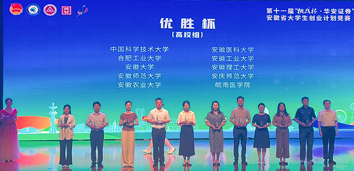 近日,第十一届“挑战杯·华安证券”安徽省大学生创业计划竞赛省级决赛在芜湖举办,我校报送的作品斩获金奖3项、银奖8项、铜奖7项,学校获“优胜杯”。我校生命科学学院蒋国强、吕浩文和第一临床医学院潘文君三位同学的原创作品被选定为此次全省竞赛的主题口号和会徽。