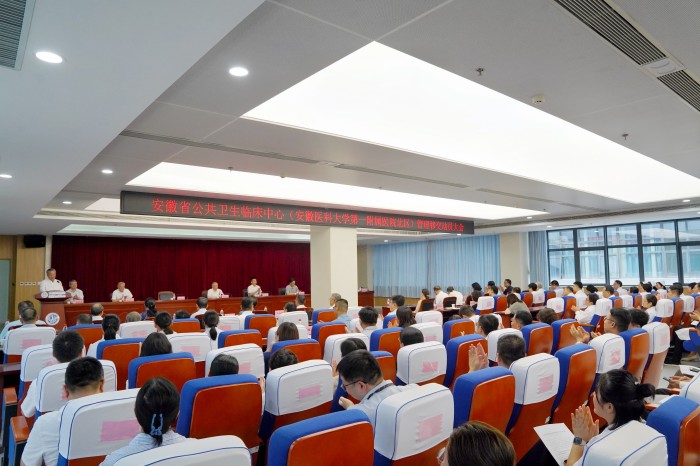 9月12日下午,我校举办省公共卫生临床中心(第一附属医院北区)管理移交动员大会,动员部署下一阶段中心建设发展工作。安徽省卫生健康委党组书记、主任刘同柱,省疾控局副局长、二级巡视员王海,校党委书记王琦、校长翁建平,校党委常委、副校长余永强出席会议。校党委常委、组织部部长李阳新宣读干部任免文件。第一附属医院院长孙倍成等医院领导出席会议。