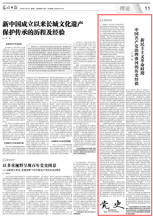 10月9日,我校马克思主义学院蔡胜教授在《光明日报》发表理论文章《新民主主义革命时期中国共产党治理淮河的历史经验》。