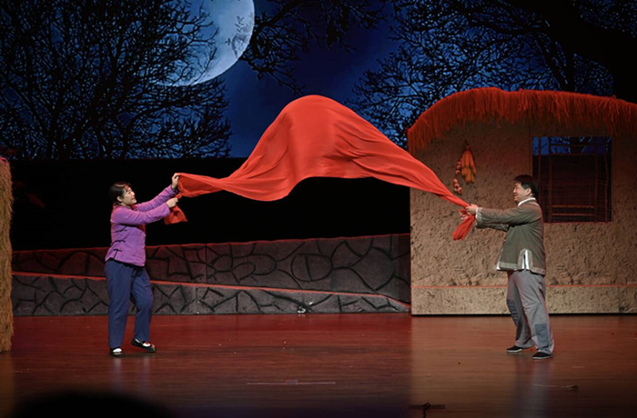 歌剧《向前》以点带面地描绘了淮海战役期间男女老幼齐上阵、家家户户支前忙的生动画卷,还原了其壮观场面。该剧深入挖掘了皖北民歌和地方戏曲等“非遗”元素,在唱腔和合唱编配中融入了淮北花鼓戏、泗州戏、淮北梆子戏等戏曲的艺术特色,以更加新颖、现代的艺术形式展现了中华优秀传统文化。演出生动精彩,赢得现场师生的热烈掌声。